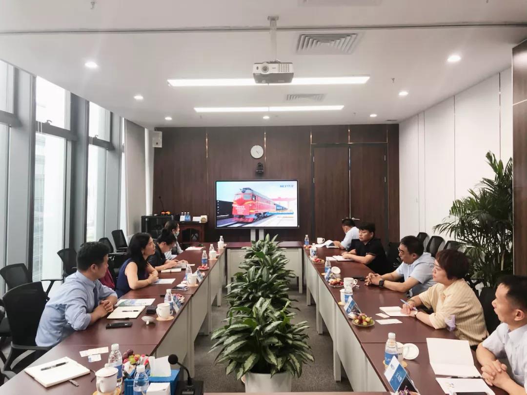 近日,九江市政府副秘書長、市商務(wù)局局長黃家杰,九江市交通航運(yùn)發(fā)展集團(tuán)有限公司總經(jīng)理助理劉峰,九江交發(fā)航運(yùn)交易信息科技有限公司董事長郭峰等代表蒞臨我司,就九江市中歐班列發(fā)展規(guī)劃進(jìn)行深入交流。
