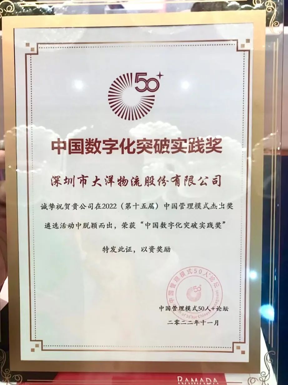 11月5日,由[中國(guó)管理·全球論壇]組委會(huì)、C50+論壇聯(lián)合舉辦的第十二屆“中國(guó)管理·全球論壇”暨第十五屆中國(guó)管理模式杰出獎(jiǎng)?lì)C獎(jiǎng)盛典在長(zhǎng)沙啟幕。深圳市大洋物流股份有限公司(以下稱(chēng)“大洋物流集團(tuán)”)憑借數(shù)字化管理的突出表現(xiàn)榮獲“中國(guó)數(shù)字化突破實(shí)踐獎(jiǎng)”!