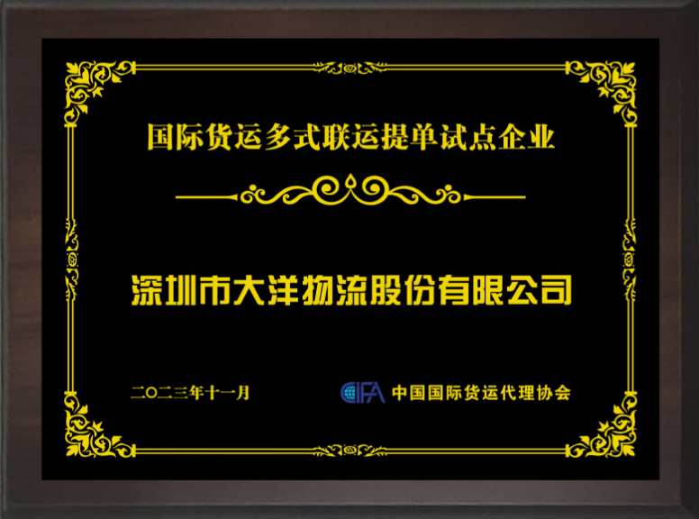 大洋物流集團入選國際貨運多式聯(lián)運提單試點企業(yè)!