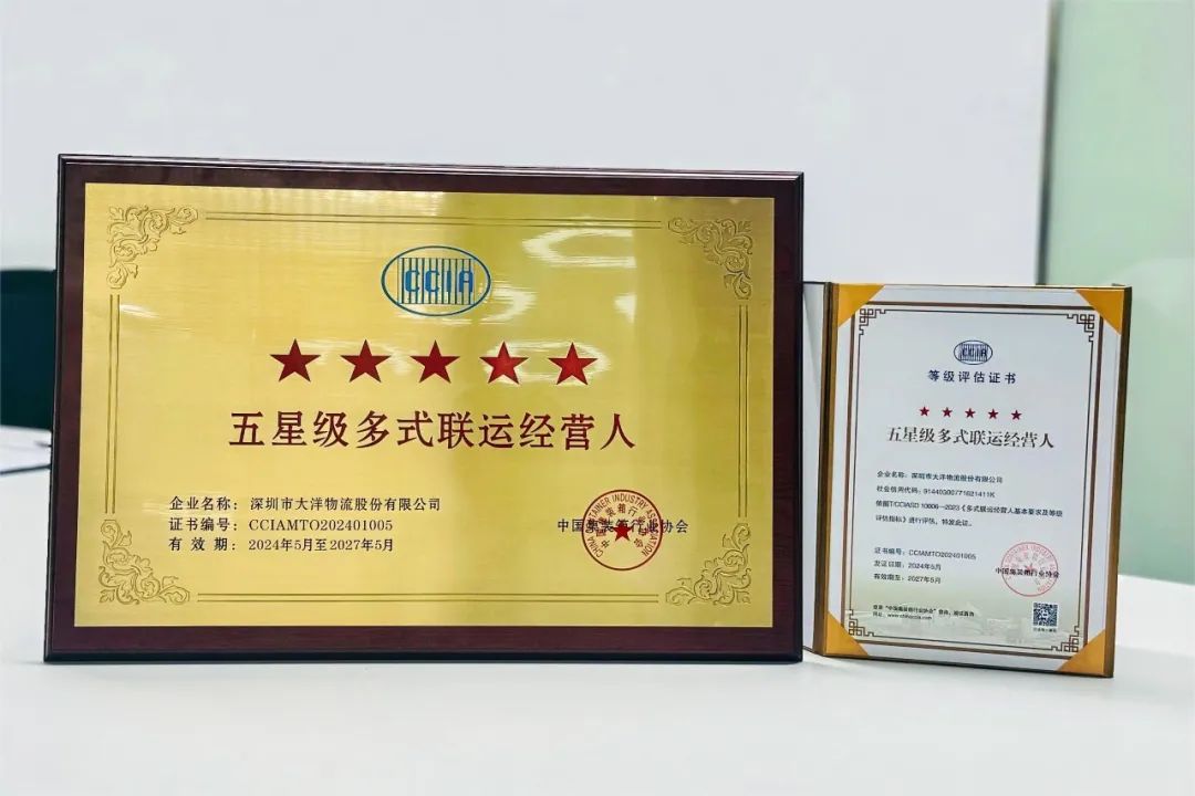 喜訊!大洋物流集團(tuán)獲評五星級多式聯(lián)運(yùn)經(jīng)營人