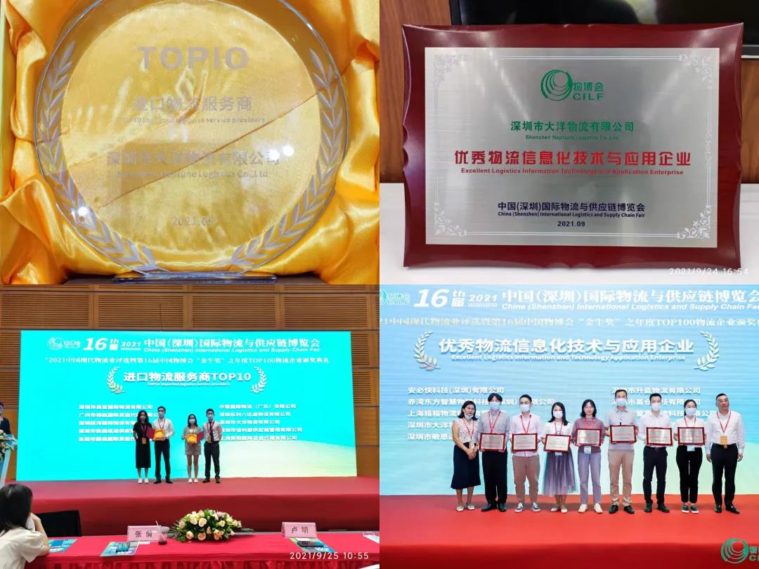 同時,大洋物流憑借在業(yè)務(wù)和技術(shù)領(lǐng)域上的不斷創(chuàng)新,榮獲了主辦方評選的“優(yōu)秀物流信息化技術(shù)與應(yīng)用企業(yè)”和“進(jìn)口物流服務(wù)商”獎項。