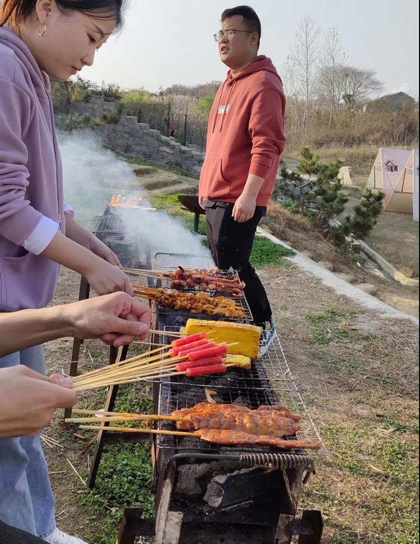 有的組員一看就是燒烤達人,但也有一部分是菜鳥小白,但彼此間依然會相互借鑒學習燒烤的經(jīng)驗。而一旁等待著美食的吃貨們不斷被彌漫周圍的燒烤香引得口水直流。