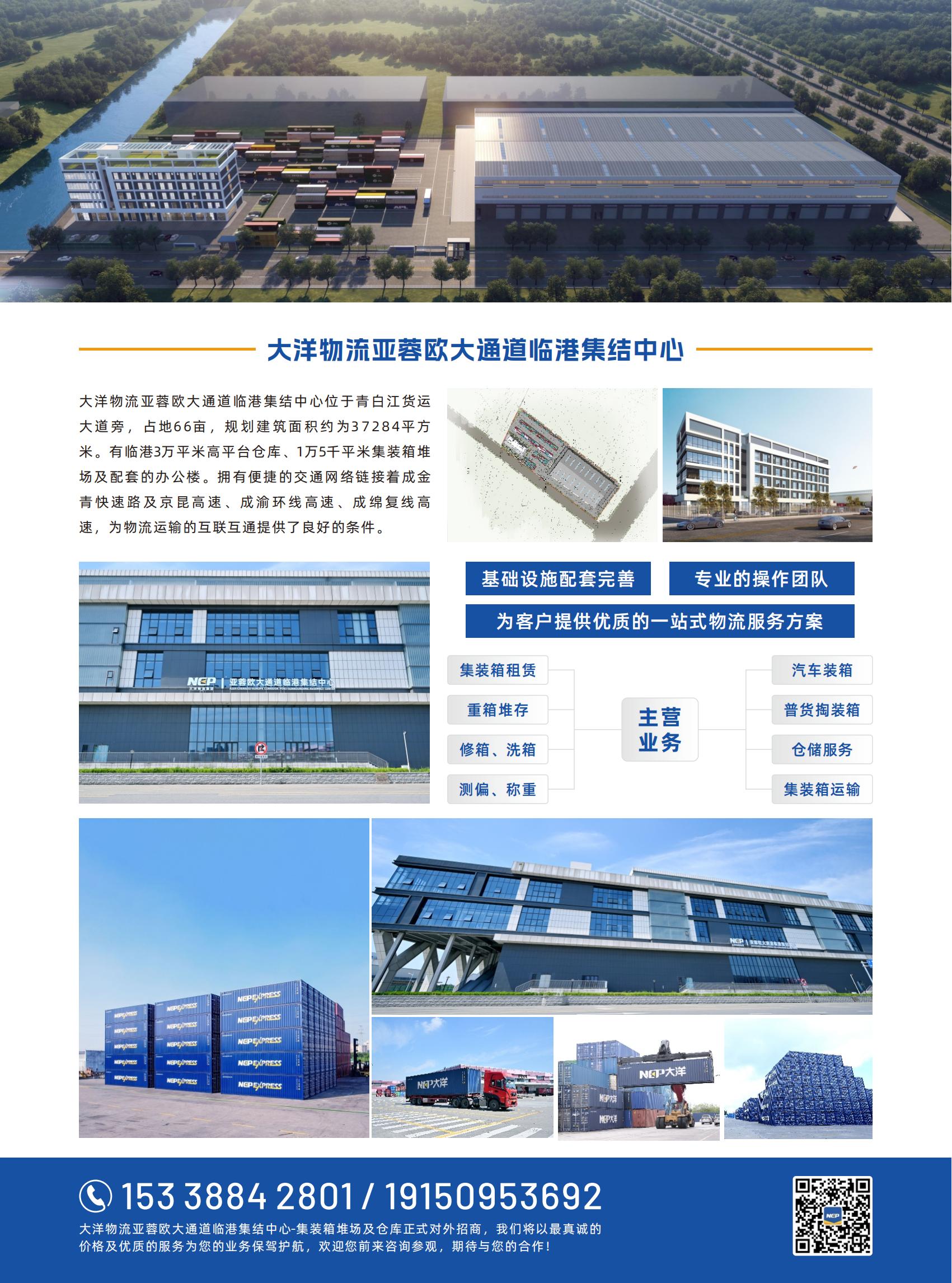 大洋物流亞蓉歐大通道臨港集結(jié)中心項(xiàng)目位于青白江成都國(guó)際鐵路港內(nèi),占地66畝,規(guī)劃建筑面積約為37284平方米。項(xiàng)目建設(shè)內(nèi)容有臨港倉(cāng)庫(kù)、集裝箱堆場(chǎng)及配套的辦公樓。項(xiàng)目建成后,將加快中歐班列(成都)全程運(yùn)營(yíng)服務(wù)能力,推動(dòng)中歐班列(成都)市場(chǎng)化運(yùn)營(yíng)機(jī)制、全程倉(cāng)配體系、運(yùn)貿(mào)一體模式、供應(yīng)鏈金融服務(wù)。